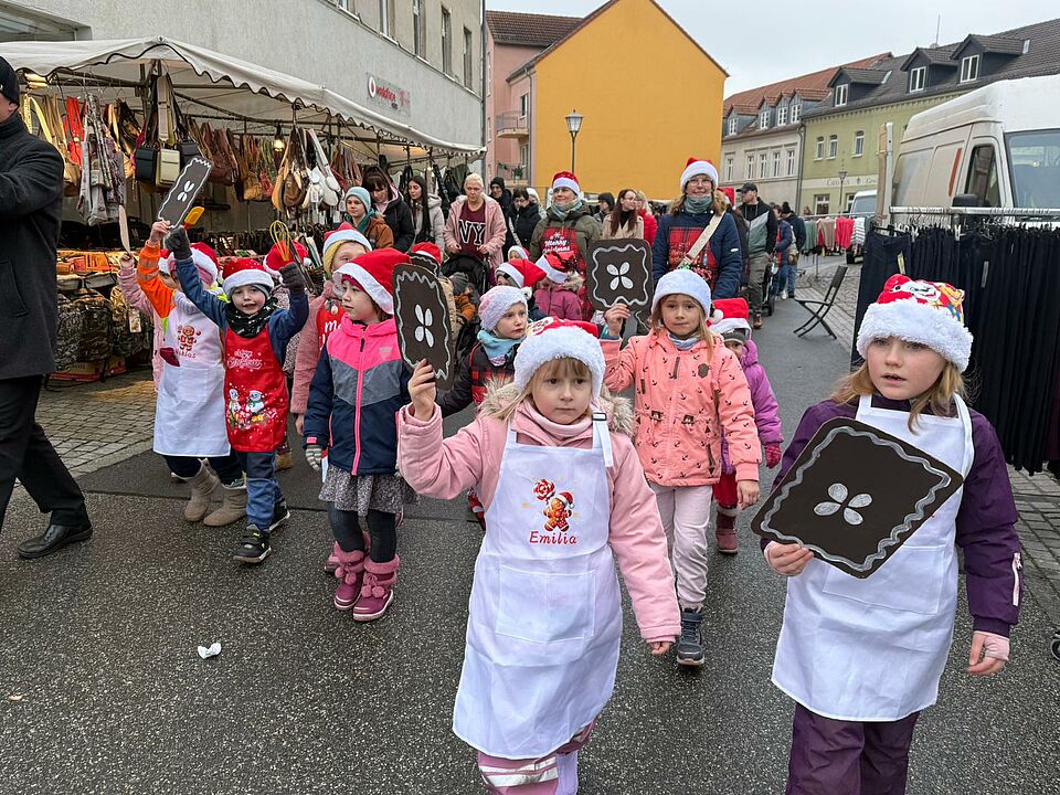 Am dritten Adventswochenende folgte eine Premiere: Die Teilnahme an der von der Stadt Elsterwerda organisierten Weihnachtsparade. In festlichen Kostümen zogen die Kinder und Eltern gemeinsam durch die Stadt bis zur Marktplatzbühne, wo die „Stadtmäuse“ ihr Weihnachtsprogramm noch einmal vor großem Publikum aufführen durften.